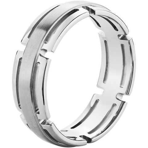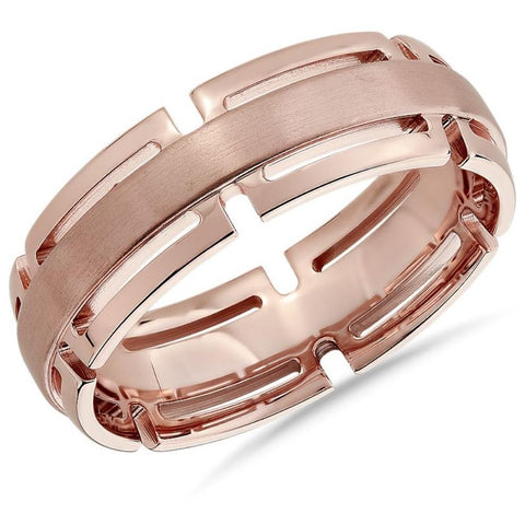 Men's 7mm Modern Link Edge Wedding Ring in White, Yellow, or Rose Gold