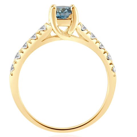 .60Ct Blue & White Diamond Engagement Ring in 14k Yellow Gold