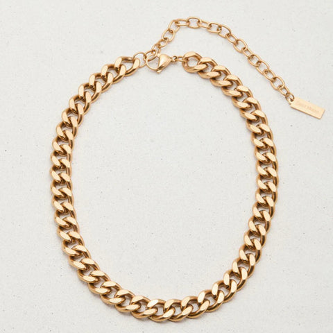 Alize Necklace 18k Gold Plated 14" 12mm Width Curb Chain with 4" Extender