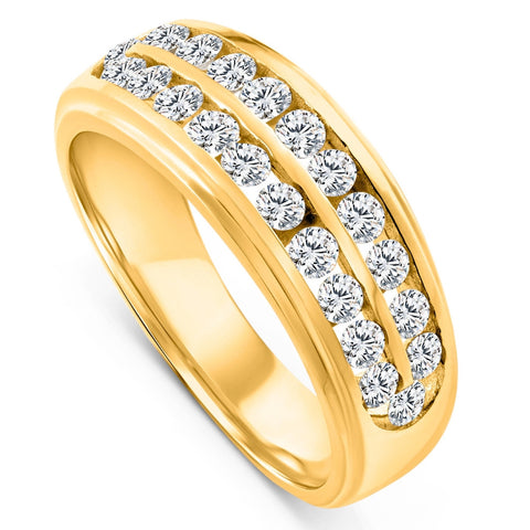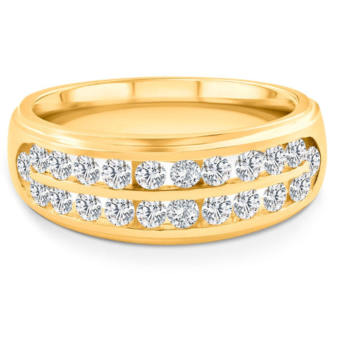 1 Ct Lab Grown Diamond Mens Double Row Wedding Ring 10k Yellow Gold