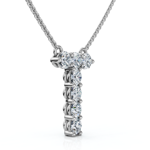 1Ct Diamond Initial "T" Pendant 14k Gold 18" Necklace Lab Grown 5/8" Tall