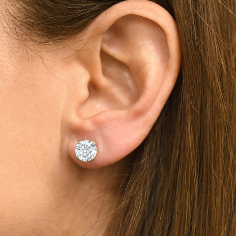 G/VS 3 Ct TW Round Moissanite Screw Back Studs 14k White Gold