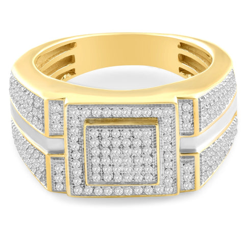 Men's 1/4 CT. T.W. Diamond Micro Cluster Square Stepped Ring in 10K Yellow Gold