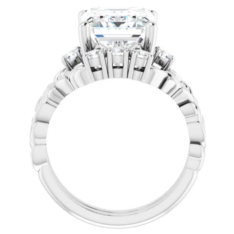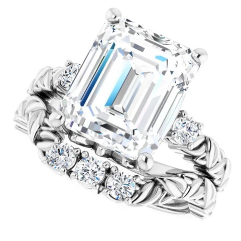 5 1/2 Ct Diamond & Emerald Cut Moissanite Petite Leaf Engagement Set in 10k Gold