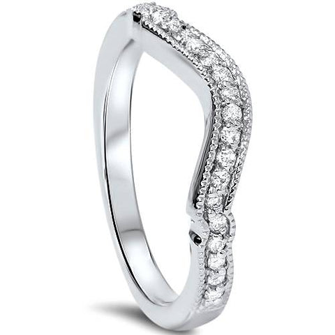 1/6ct Curved Diamond Wedding Ring 14k White Gold