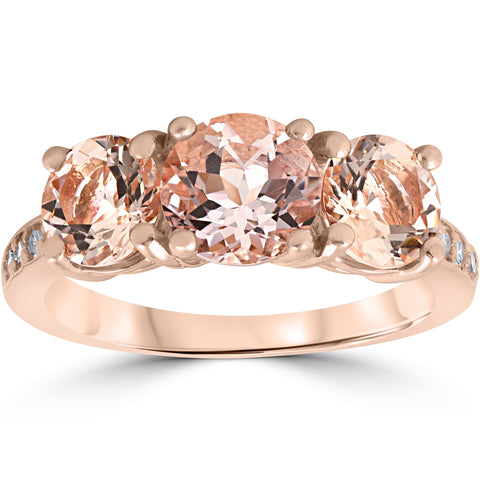 3 1/4 ct Morganite & Diamond 3-Stone Ring 14k Rose Gold