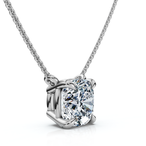 Certified 3Ct Cushion Solitaire Diamond Pendant 14k Gold 18" Necklace Lab Grown