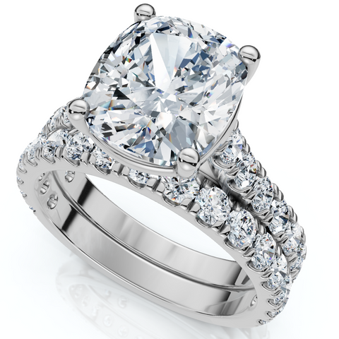 Certified 4Ct Cushion Diamond Engagement Wedding Ring Set 14k Gold/PT Lab Grown