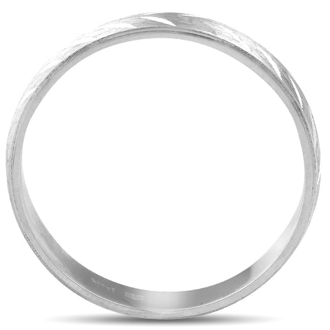 Chevron Brushed Mens Wedding Band 14K White Gold