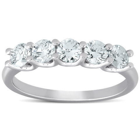 1 Ct Five Stone EX3 Lab Grown Diamond Wedding Ring 14k White Gold EX3 Lab Grown