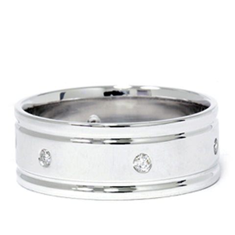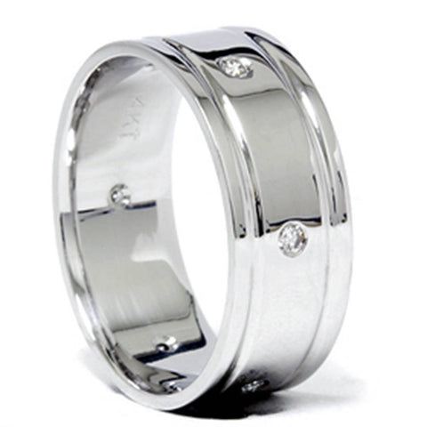 Mens 8mm 14K White Gold Comfort Wedding Diamond Band