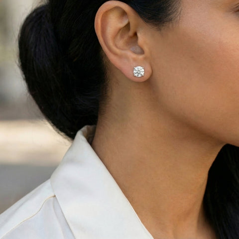 4 Ct TW Round Moissanite Screw Back Studs 14k White Gold