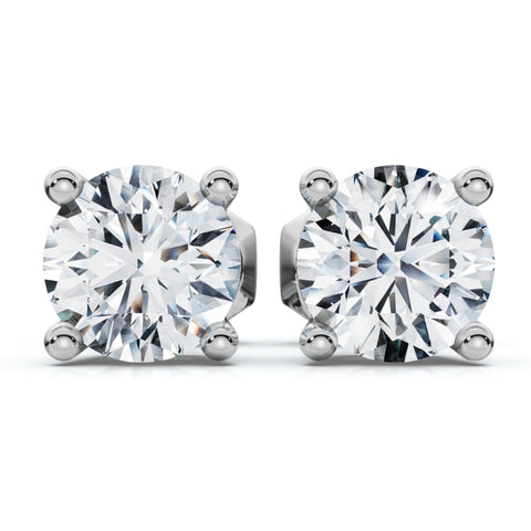 2 Ct TW Round Lab Grown Diamond Studs 14K White Gold With Screw Backs