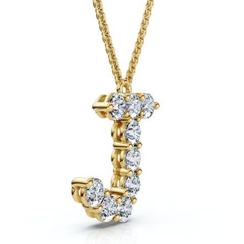 1Ct Diamond Initial "J" Pendant 14k Gold 18" Necklace Lab Grown 5/8" Tall
