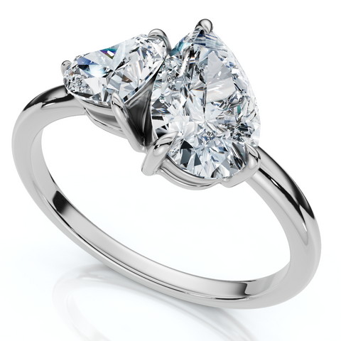 1 1/2Ct Heart & Pear Two Stone Toi et Moi Diamond Ring 14k Gold or Pt Lab Grown