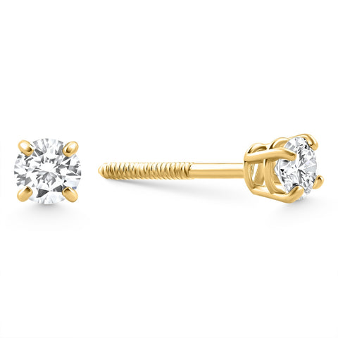 1/4 Ct Diamond Screw Back Studs 14k Yellow Gold Lab Grown Eco Friendly