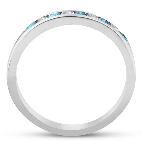 1/4ct Blue & White Diamond Wedding Ring 14K White Gold