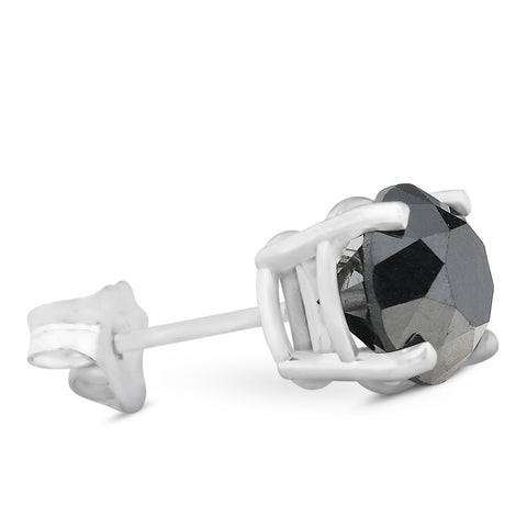 2ct Black Diamond Single Stud 14K White Gold (This is one earring not a pair)