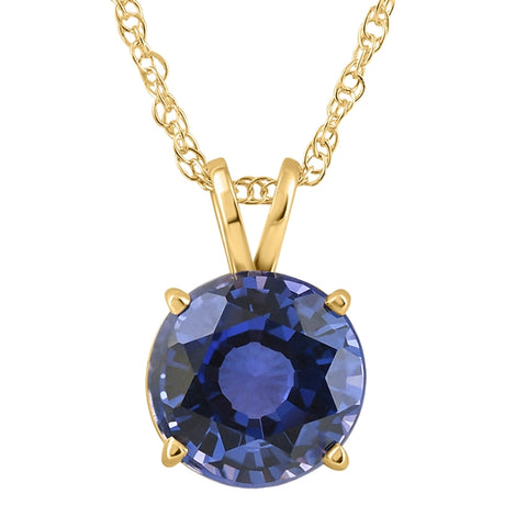 3.50Ct Round Blue Sapphire Solitaire Pendant 14k Gold Necklace Lab Grown 9MM