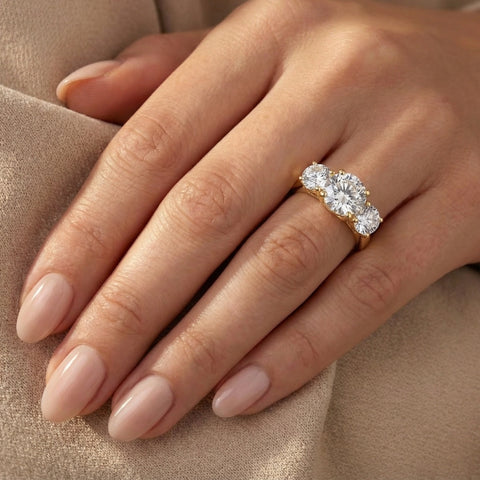 Certified 5Ct Three Stone Diamond Engagement Anniversary Ring 14k Gold Lab Grown