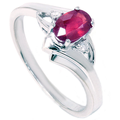 5/8ct Oval Ruby & Diamond Ring 14K White Gold