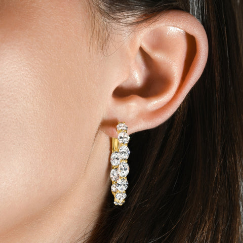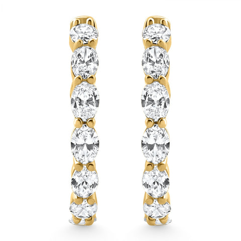 8Ct TW Oval Diamond Inside Outside Hoops Vault Lock 14k Yellow Gold Lab Grown