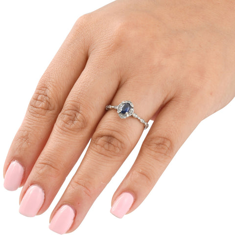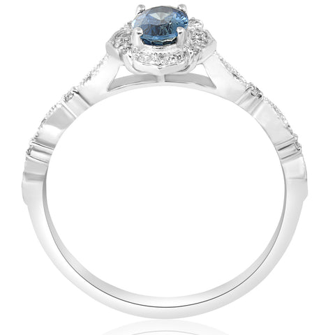 3/4ct Oval Blue Sapphire Diamond Halo Vintage Engagement Ring 14K White Gold