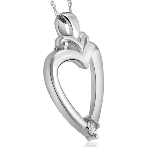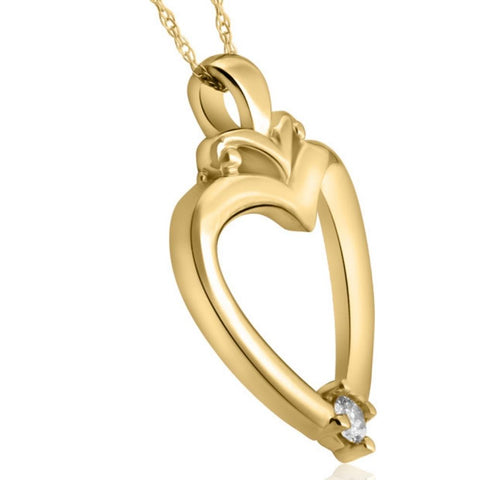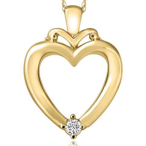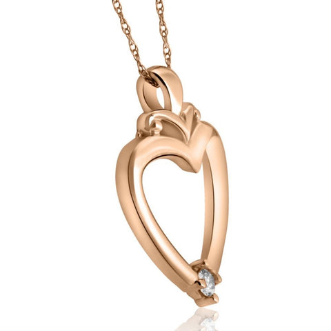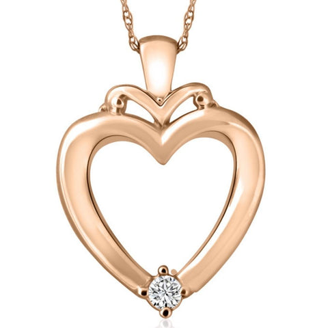 Solitaire Diamond Heart Pendant in White, Rose or Yellow Gold 1" Tall