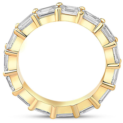 5Ct Emerald Moissanite Eternity Ring in 14k Yellow Gold