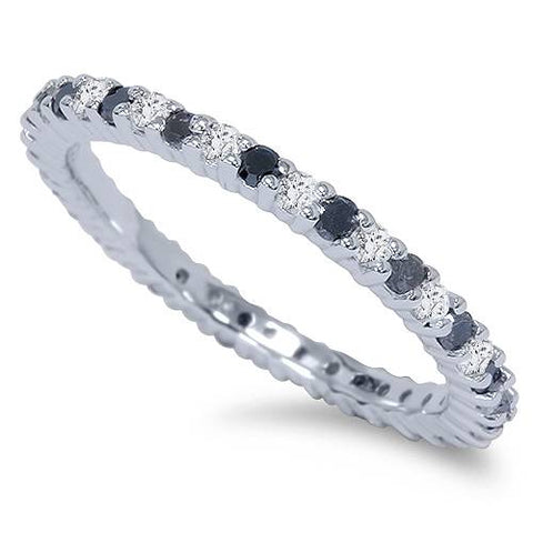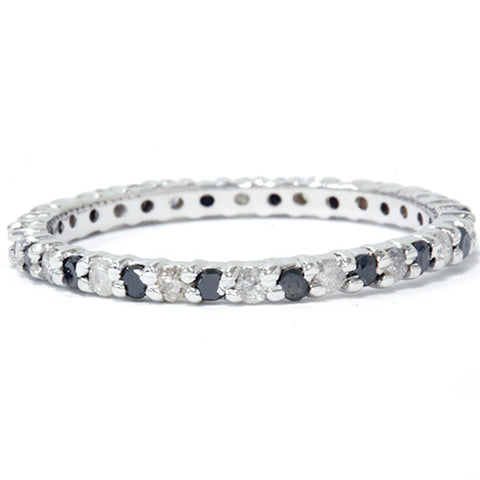 1/2ct Black & White Diamond Eternity Ring 14K White Gold