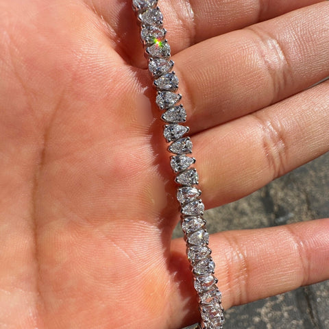 10Ct Pear Shape Diamond Tennis Bracelet Wide 14k White Gold Lab Grown