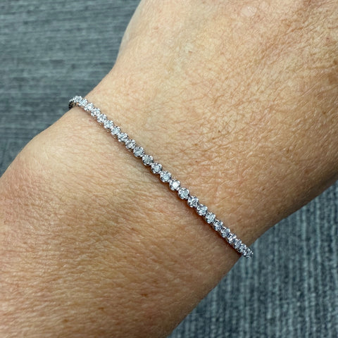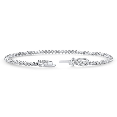 14k White Gold 1Ct TW Natural Diamond Tennis Line Bracelet 7"