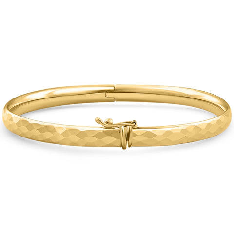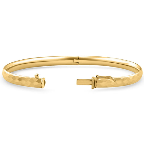 5mm Hammered Bangle Bracelet 18k Yellow Gold Over Silver