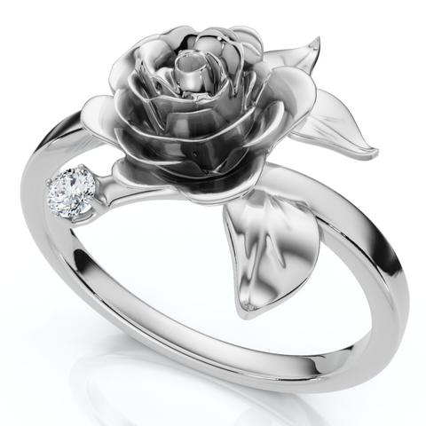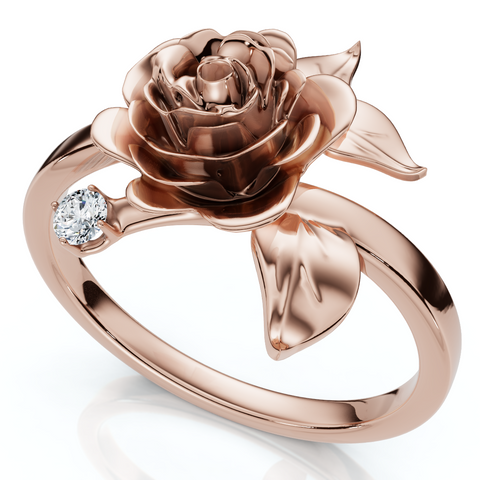 Rose and Diamond Engagement Ring 14k Gold Lab Grown