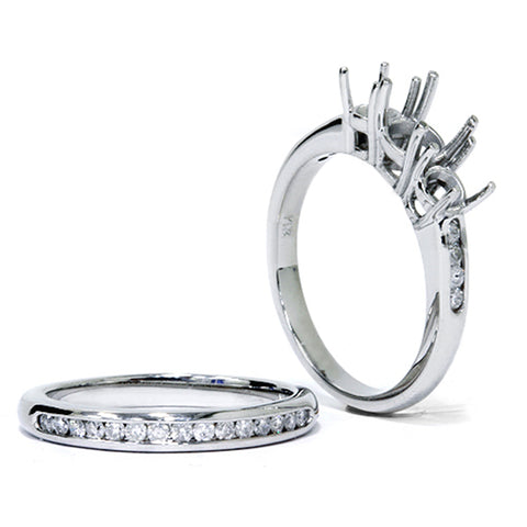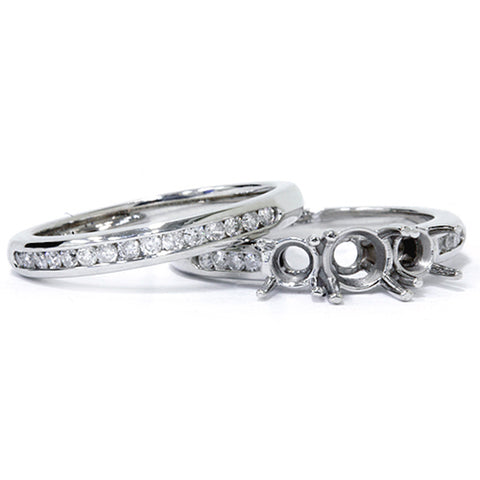 3/8ct Three Stone Engagement Wedding Ring Set 14K White Gold