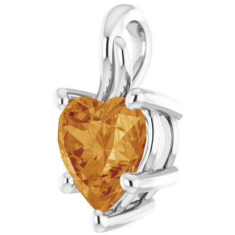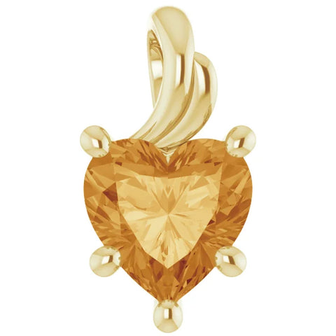 7mm Citrine Women's Heart Pendant in 14k Gold Necklace 5mm Tall