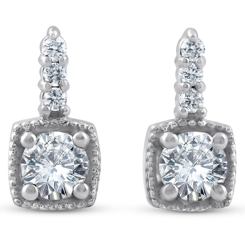 3/4ct Diamond Cushion Framed Drop Earrings 14k White Gold Petite 11mm Tall