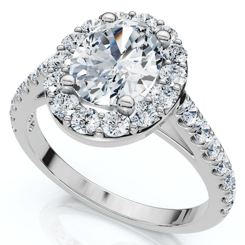 Platinum 1 1/2 Ct Oval Diamond Halo Engagement Ring Lab Grown