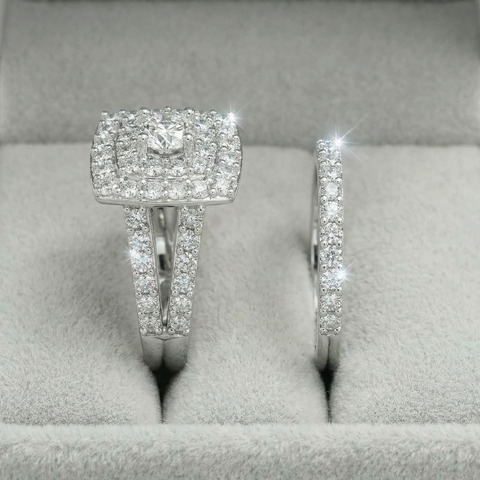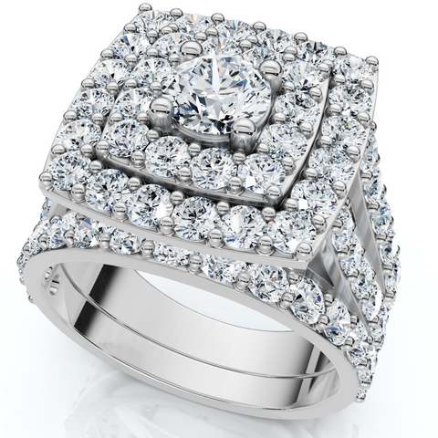 3Ct Cushion Halo Diamond Engagement Wedding Ring Set Lab Grown 10k