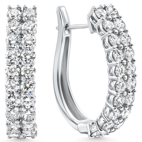 1 - 5 Ct Double Row Diamond Hoops 14k Gold Lab Grown Women's Earrings