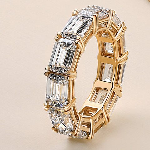 10Ct Emerald Cut Diamond Eternity Ring East West Set 14k White Gold Lab Grown
