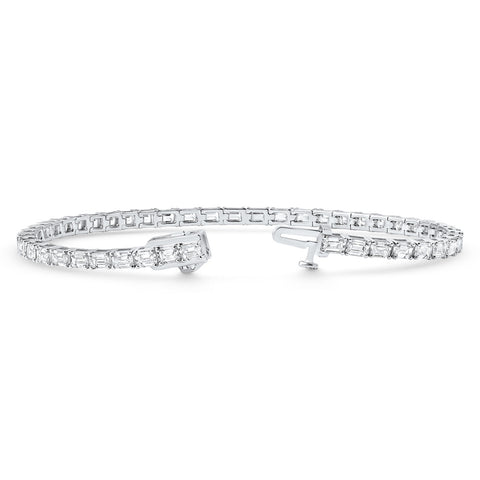 7Ct Emerald Cut Diamond East West Tennis Bracelet 14k White Gold Lab Grown