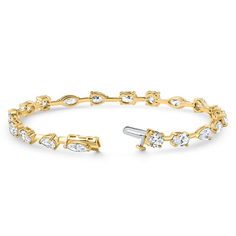 8Ct Mixed Cut Diamond Tennis Bracelet 7" 14k Yellow Gold Lab Grown
