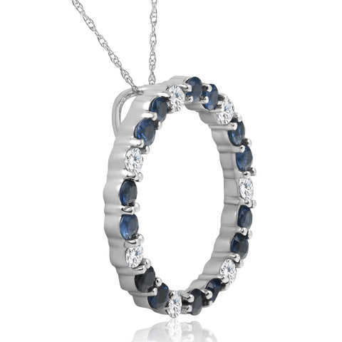 14K White Gold 2ct Diamond & Sapphire Circle Pendant
