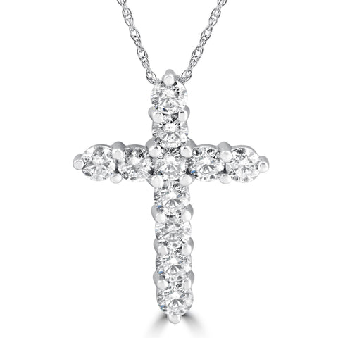 1ct Diamond Cross Pendant 14K White Gold (1 inch tall) Lab Grown