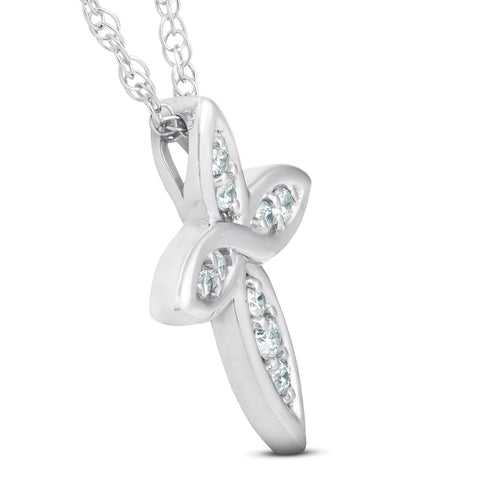 1/10 Ct Diamond Cross 14k White Gold 5/8" Tall