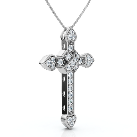 1/2ct Fancy Unique Diamond Cross Pendant 14K White Gold