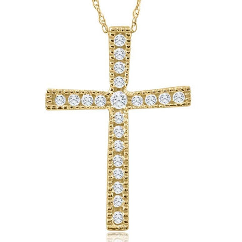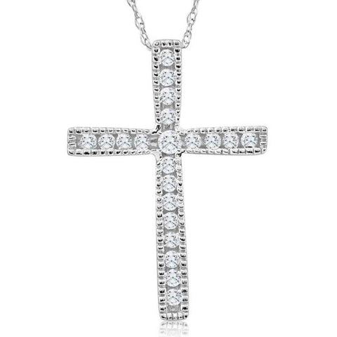 1/3Ct Round Cut Diamond Cross Pendant 10k White or Yellow Gold Necklace 1" Tall