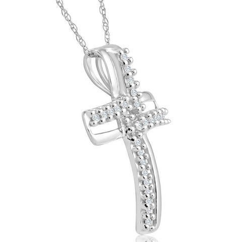 1/4Ct T.W. Diamond Cross 10k White Gold Pendant 18" Chain Necklace