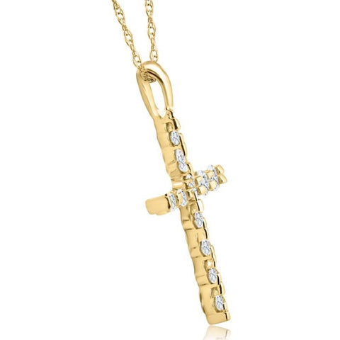 1/5Ct Diamond Cross Pendant 10k Yellow Gold 18" 10k Gold Necklace